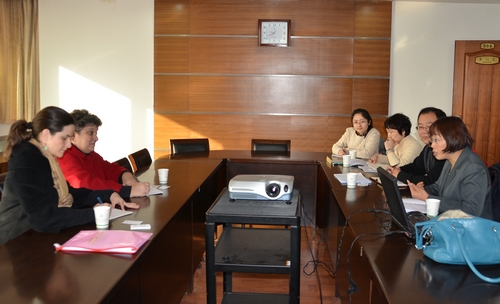 Mariah、Prenger女士一行与教务处、资环学院、国际合作与交流处负责人就本科生“2+2”项目的课程对接、学分认定、存在问题等事宜进行了具体沟通,达成了初步共识。双方一致同意2013年推动两校“2+2”项目的实质运作。