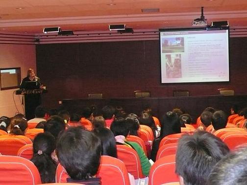 阿德莱德大学中国项目负责人 Sandy McConachy女士介绍了阿德莱德大学的基本情况,并详细为我校申请阿德莱德大学的学生做了入学情况讲解。之后,阿德莱德大学人文学院的Amanda Nettelbeck教授为同学们详细介绍了阿德莱德大学人文学院的研究领域、师资力量、课程设置和入学条件。