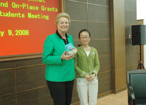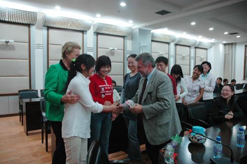 Winklehner教授很欣赏我校受助大学生流利的英语表达能力,并对其自信、乐观的人生态度表示赞赏。她表示在座的师生都是非常可爱、优秀的年青人,相信大家一定会有光明的未来,并相信有这多的优秀人才,中国奥运一定会取得成功。
